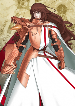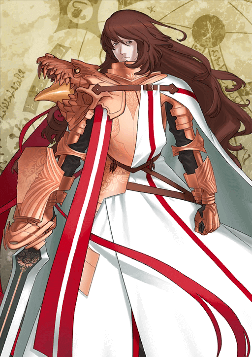 A well-known saint by the name of Saint George, or Georgios. He's known for killing a dragon with the sacred sword Ascalon. He mounts a horse, Bayard, that can negate an enemy attack once.